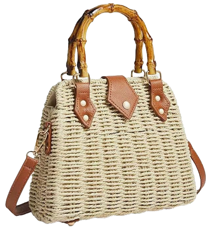 Bamboo Handle Straw Handbag