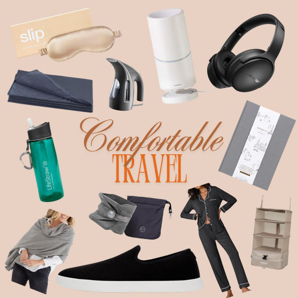 Travel isn’t just about the destination — it’s about how you feel when you land. Swapping in a neck wrap, compression socks, or a foot hammock can mean the difference between arriving stiff vs refreshed and allow you to feel comfortable during the trip as well. Here’s what to look for, and a few real traveler tips I collected. Whether you’re jet-setting solo, planning a girls’ trip, or traveling with your family, having a few thoughtful travel accessories can make all the difference. These items bring a touch of familiarity and ease to your journey, so you can feel at home no matter where you are.