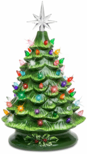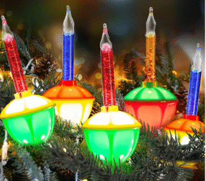 • Vintage Lights: Those retro bulb lights (C7 or C9) or bubble lights create a warm, colorful glow. I only use multi-colored lights on my tree as it’s what we had when I was growing up in the 80’s and 90’s. According to Veranda, “consumers are leaning into vintage-inspired holiday decor,” and specifically, multi-colored lights are making a comeback as a nostalgic element.