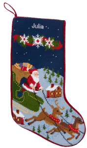 • Stockings by the Fire: Classic embroidered stockings or simple felt or burlap versions evoke tradition. I know the tradition is all matching stockings that are more elegant, but we hang up cross stitch stockings that my Grandma made